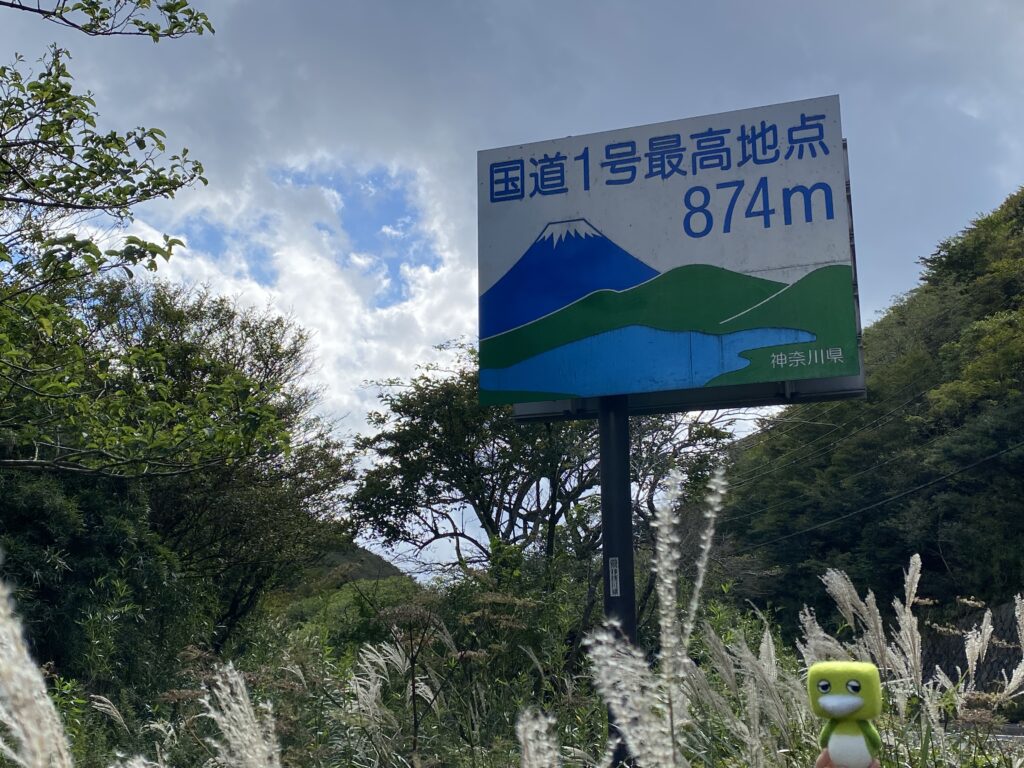 箱根の山道をふかふかと登っていくと、ついにやってきた国道1号の最高地点。 「国道なのにこんなに登るの?」って思いながら、気づけば標高874m。