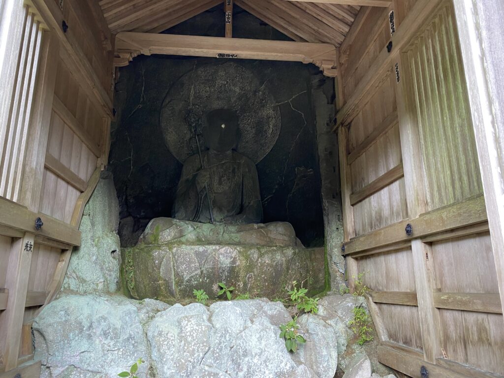 建物の中をのぞいたら、でっかいお地蔵さんがドーン。 「こんにちは…」って思わず声が出るサイズ感。