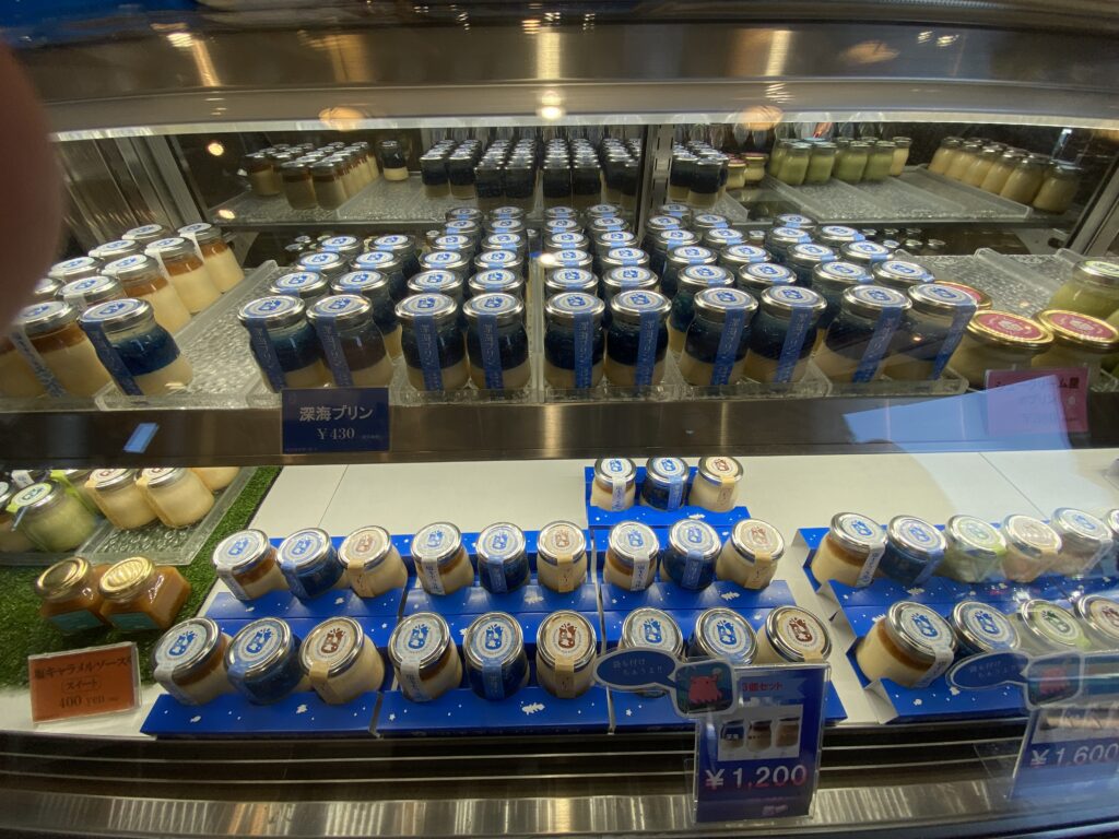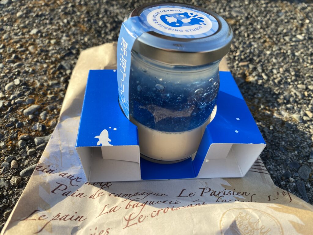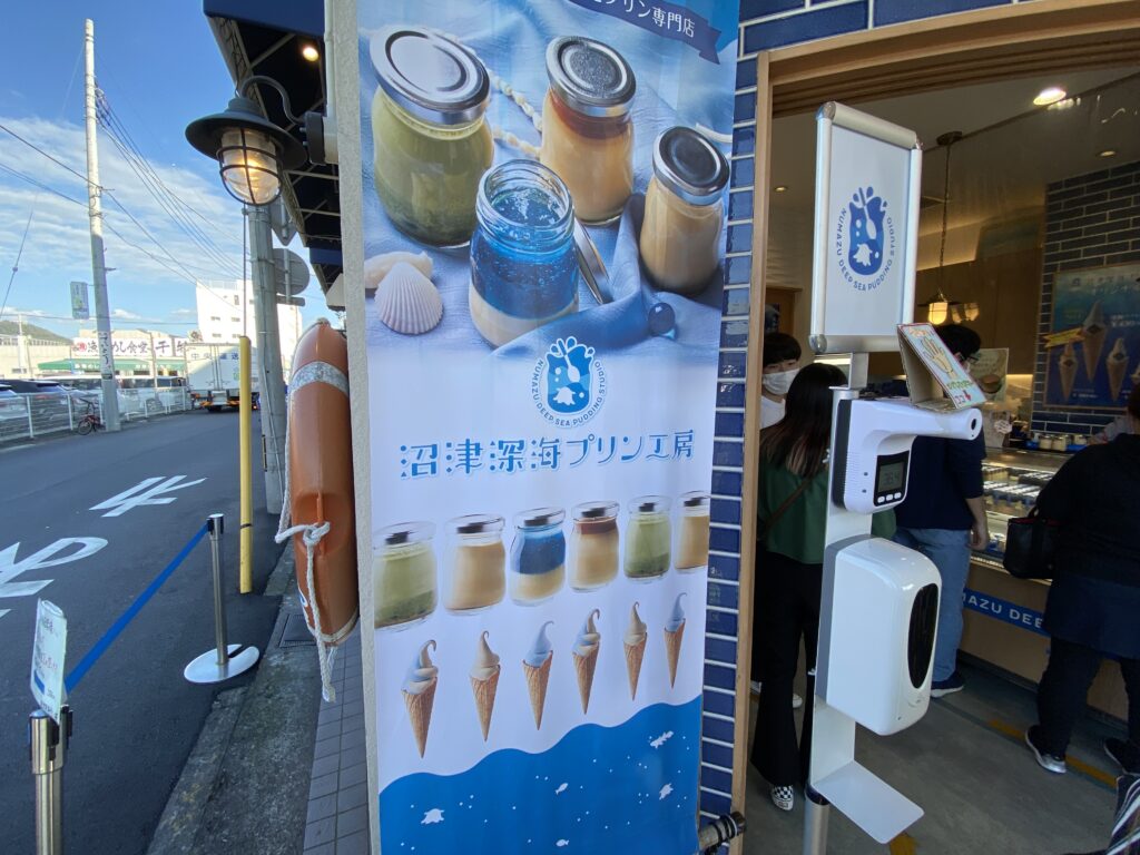 食後は、ぬまづみなと商店街で気になっていた「深海プリン」を発見。