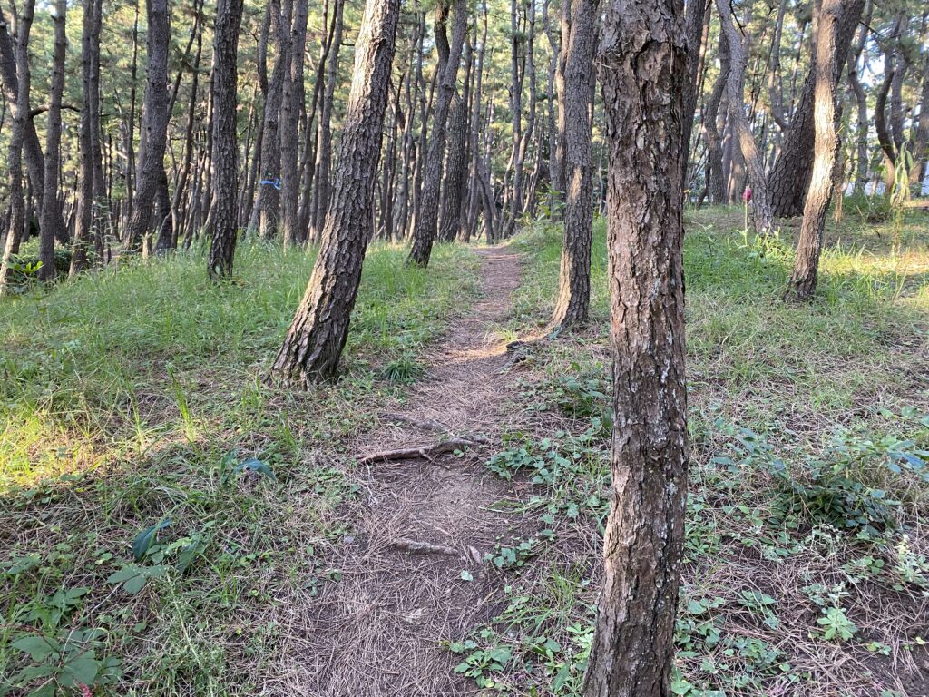 ときどき松の間から海がちらり。波の音と一緒に走るこの時間、なんだか特別でした。