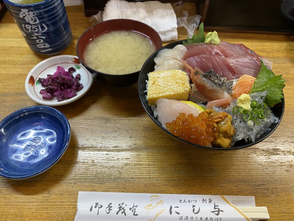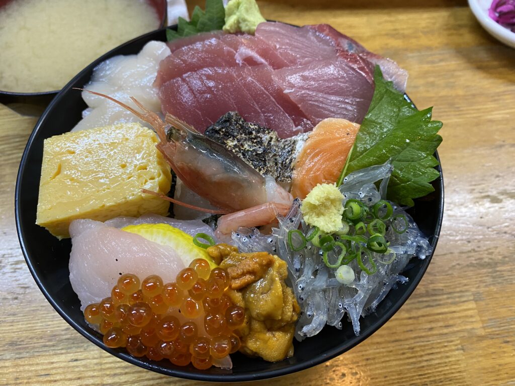 港八十三番地のにし与食堂で、11種類の海鮮が乗った「にし与丼」をいただきました。