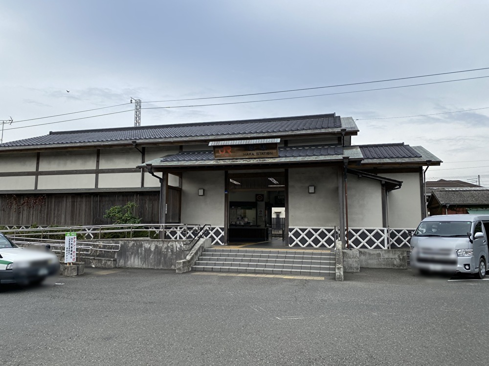 なまこ壁が印象的な、レトロな原駅をスタート。今日はどんな旅になるかな?