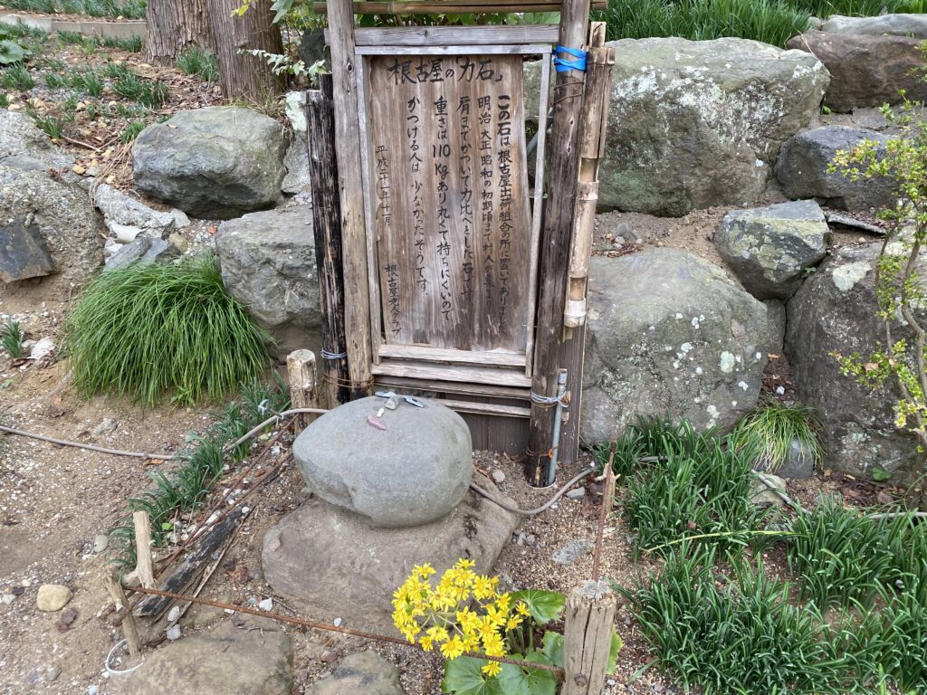 そして今回の旅のハイライト(?)は、根古屋の力石!なんと110kg。持ち上げチャレンジしてみたけど…これはなかなかの強敵。