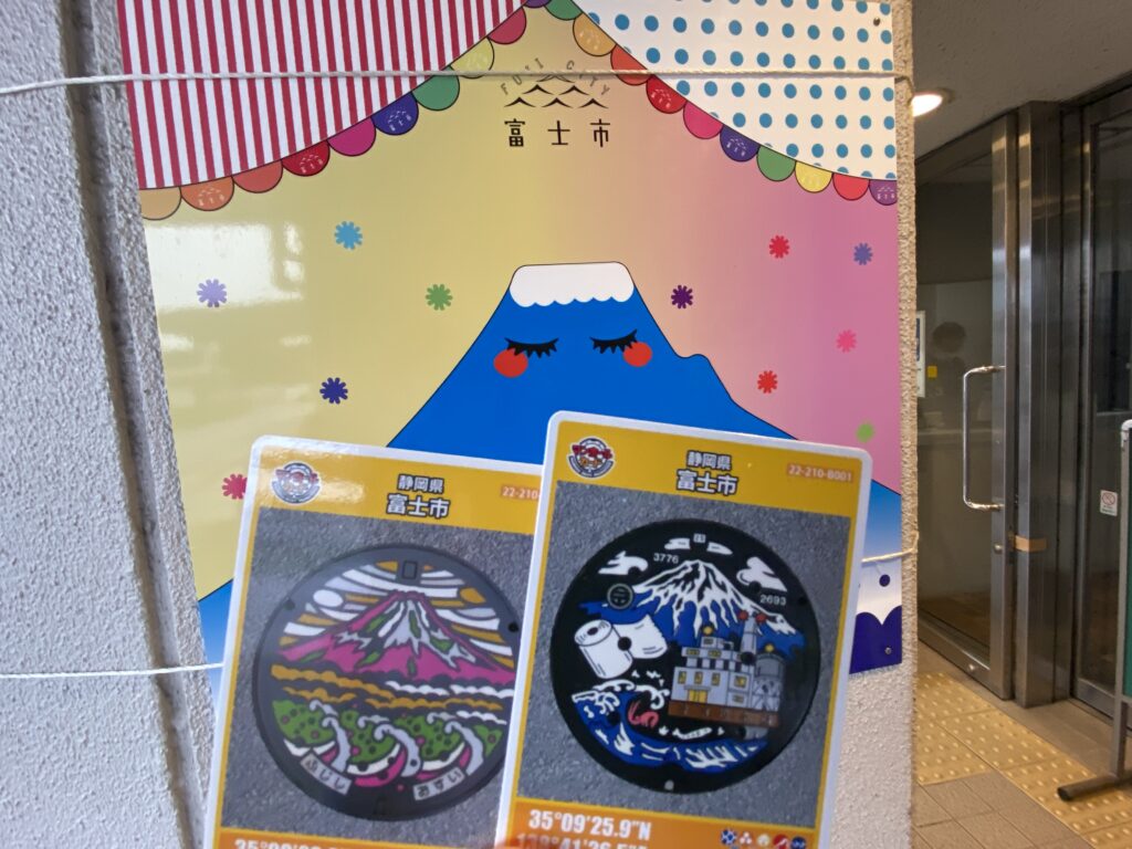 富士市役所で、マンホールカードをゲットしました!休日は市役所の北口守衛室で2種類もらえるのが嬉しいポイント。