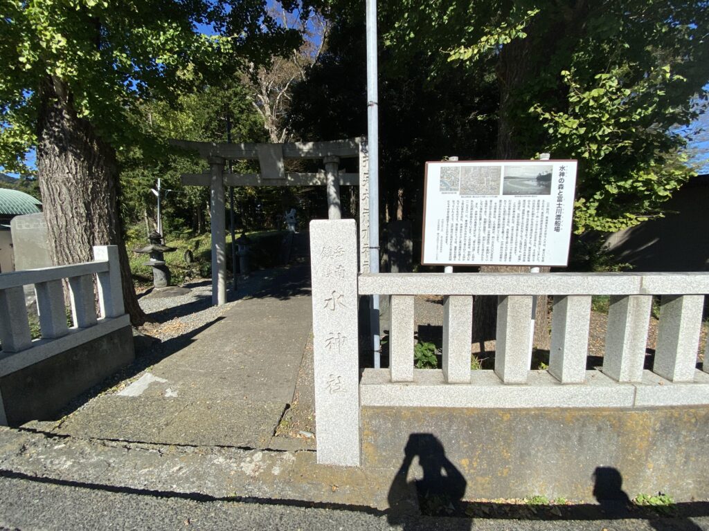 富士川のほとりにひっそりと佇む「水神社」は、江戸時代にこの川を渡るための船場があった場所に建てられた神社。富士川の急流に寄り添い、人々の暮らしを見守ってきたのがこの水神さま。