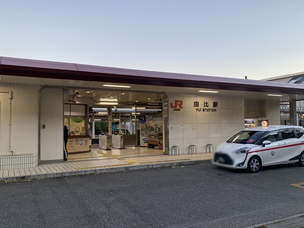 由比駅にただいま。桜えびのアーチをくぐって、ゴール!