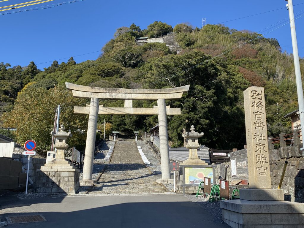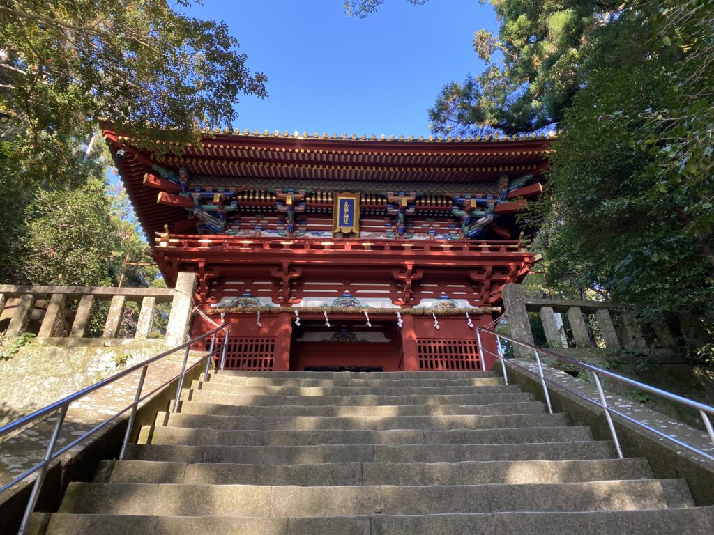 久能山東照宮までの階段は、1159段。 「いちいちご苦労さん」って言われてるけど、ほんとにその通りで、途中でちょっと休みたくなるやつ。