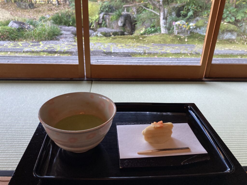 入場料にお茶とお茶菓子がついている「二の丸茶室」で紅葉を見ながら一服。これも旅ランの醍醐味。