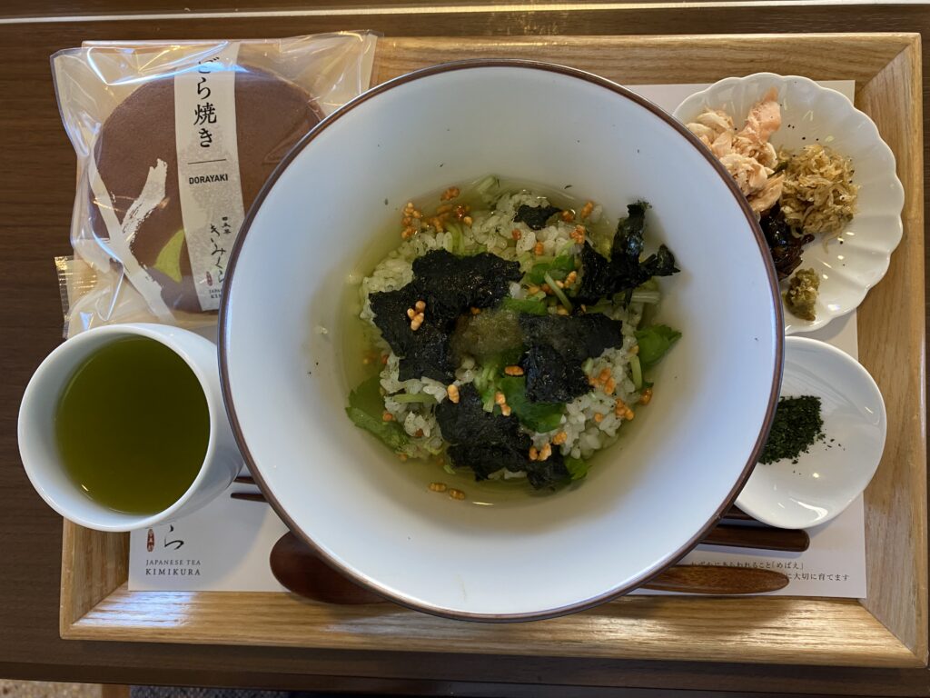 落ち着いた店内でいただいたお茶は、香りも味もまさに“本気のお茶”。ひと口飲んだだけで、あ、これは間違いなく高級…ってなるやつです。 お茶漬けは、だしとお茶の香りがふわっと広がって、体にじんわり染みるやさしさ。走ったあとにぴったりのごほうびごはん。