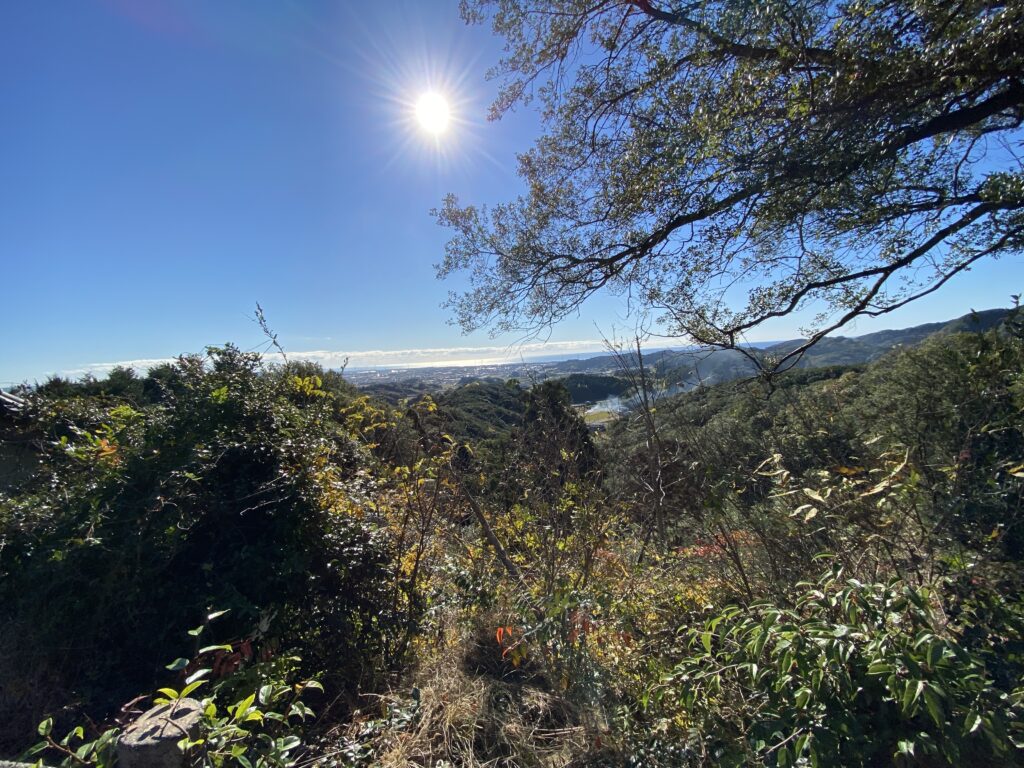 高天神社の近くからパシャリ📸。標高132mだけど、思わず『おぉ…!』って声が出るくらい、見晴らしバツグン。この日は朝9時ごろで、太陽もくっきり。ちょっと得した気分の一枚です。