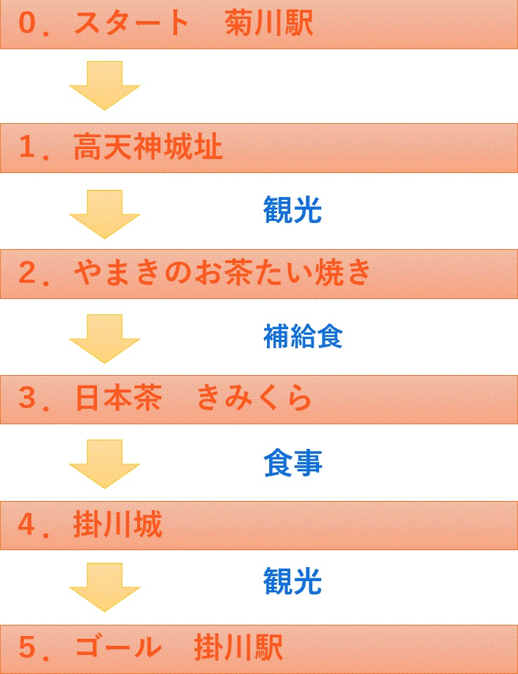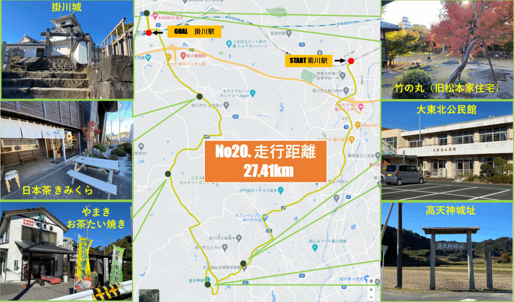 菊川駅をスタートです。高天神城までの約10km…見どころ?うーん、強いて言えば“走る自分”が主役です。