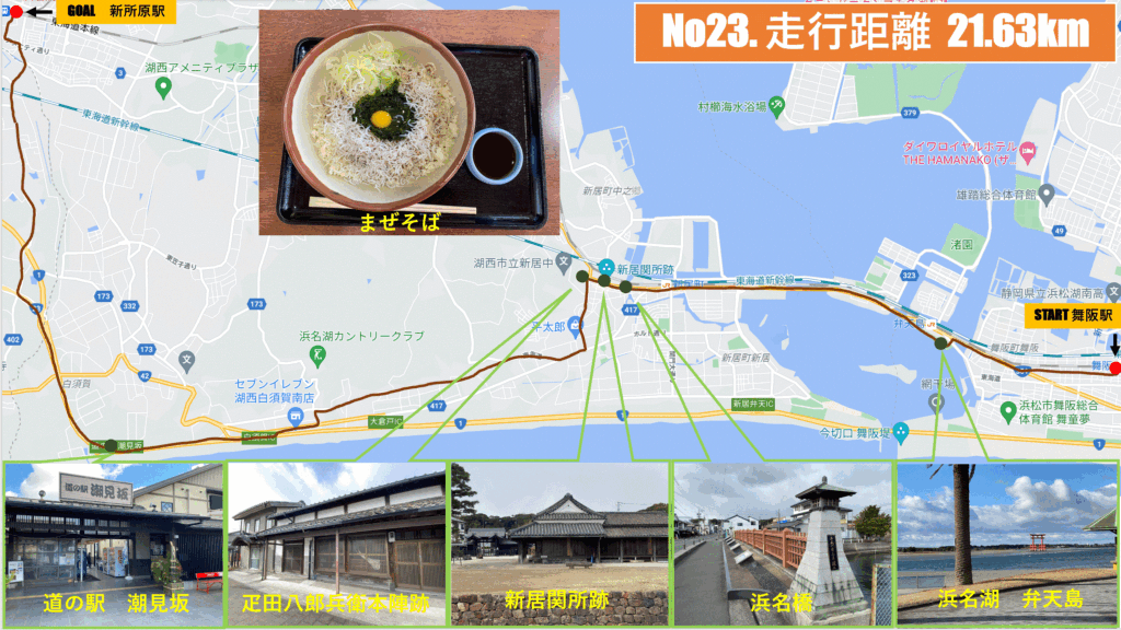 朝9:45、静岡県・舞阪駅の南口から、今日の旅ランスタート。 …したはいいけど、この日は北西からの風がびゅうびゅう🌪