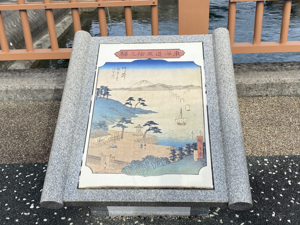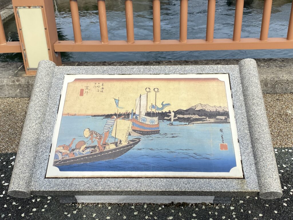 歌川広重もこの地を描いていて、橋のそばにはその浮世絵が飾られてるんだよ。