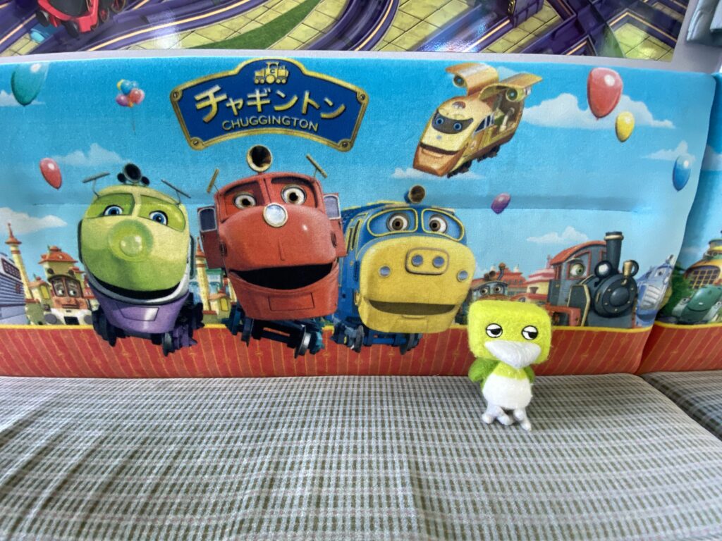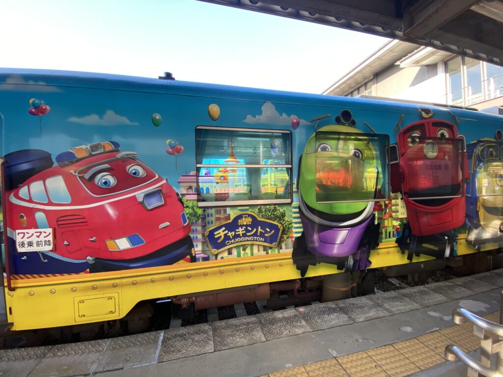 しかもこの日はラッキーなことに、チャギントンのラッピング電車に遭遇! カラフルで元気いっぱいの車体に、思わずにっこり。