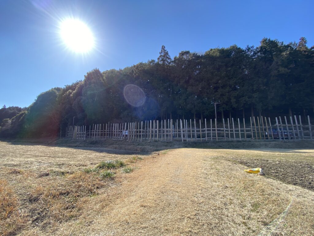 設楽原は、あの「長篠の戦い」の主な合戦場だった場所。 今は馬防柵(ばぼうさく)がずら〜っと100mにわたって再現されていて、思わず「おおっ…!」と見上げてしまう迫力。