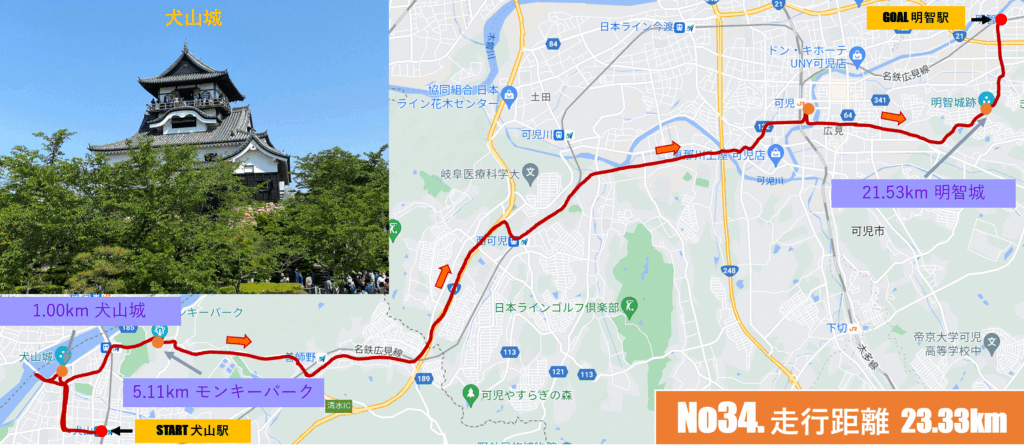 犬山城は、小牧・長久手の戦いで羽柴秀吉が拠点としたお城。 徳川家康と対峙した歴史の舞台でもあり、戦国時代の物語に何度も登場する名城です。 旅ランの途中で立ち寄るには、ちょうどいい距離感と見ごたえ!