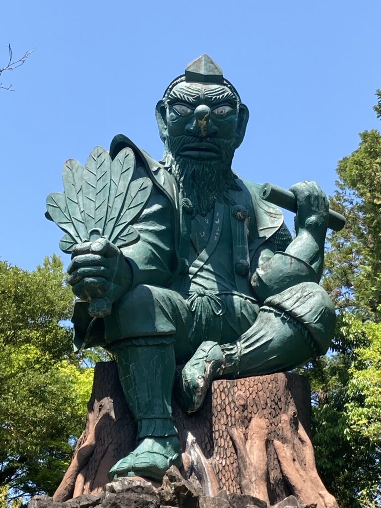 古井(こび)の天狗山には、「荒薙教(あらなぎきょう)」っていう宗教施設があって、そこに高さ12mの日本一大きな天狗像がドーン!と立ってます。