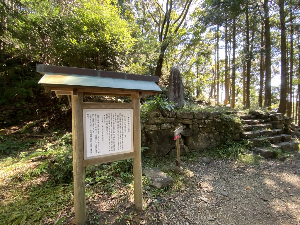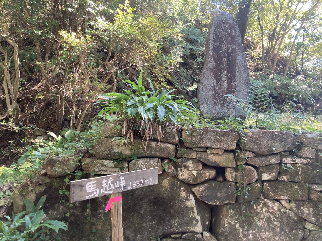 石畳の道をさらに進んでいくと、紀北町と尾鷲市の境目・馬越峠に到着! ここには、かつて馬越茶屋(間越茶屋)があったそうで、今は江戸時代の俳人・可涼園桃乙(かりょうえんとういつ)の句碑が静かに建っているよ。