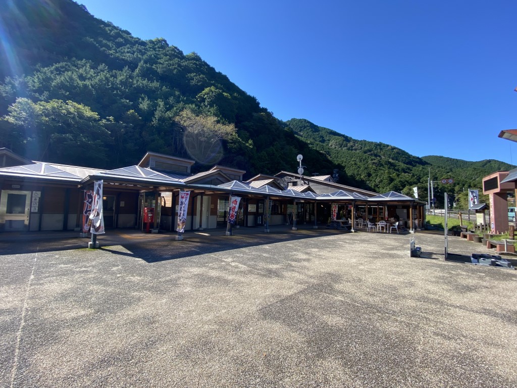 前回に続いて、今日もひたすら国道42号をひたすら走っていくよ。三野瀬駅を出発して、走ること約13km。見えてきたのは「道の駅 海山」の看板!