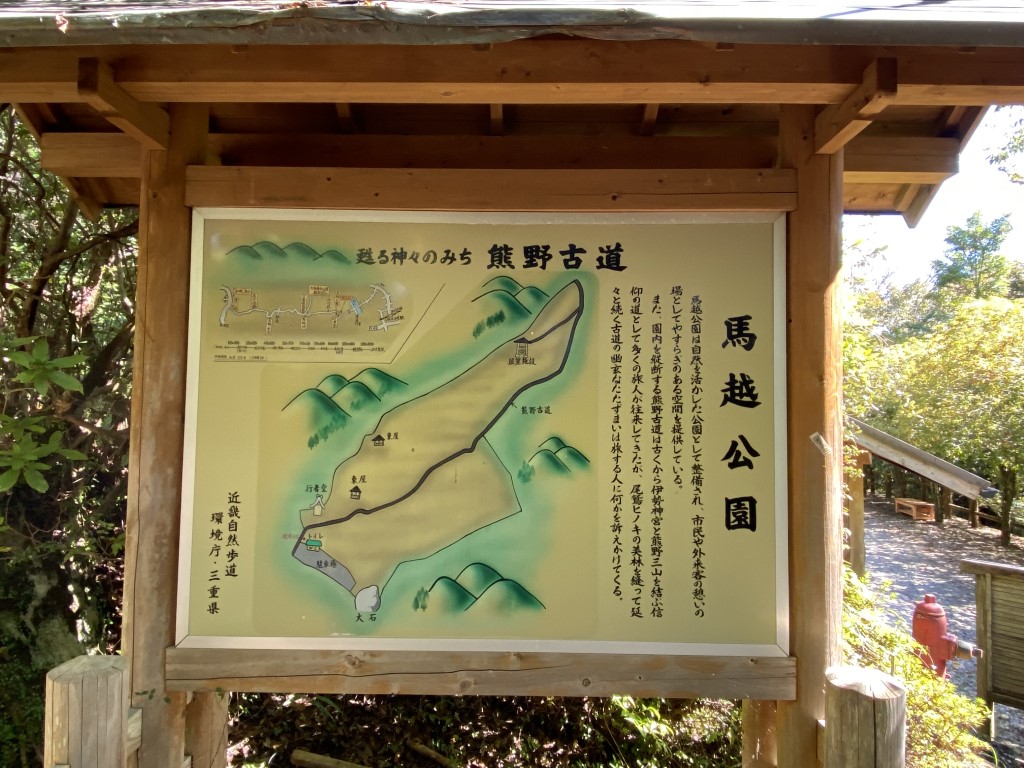 しばらく石畳を下っていくと、尾鷲市側の登り口と馬越公園が見えてきた!ここからは、いよいよ市内を目指して歩いていくよ〜。