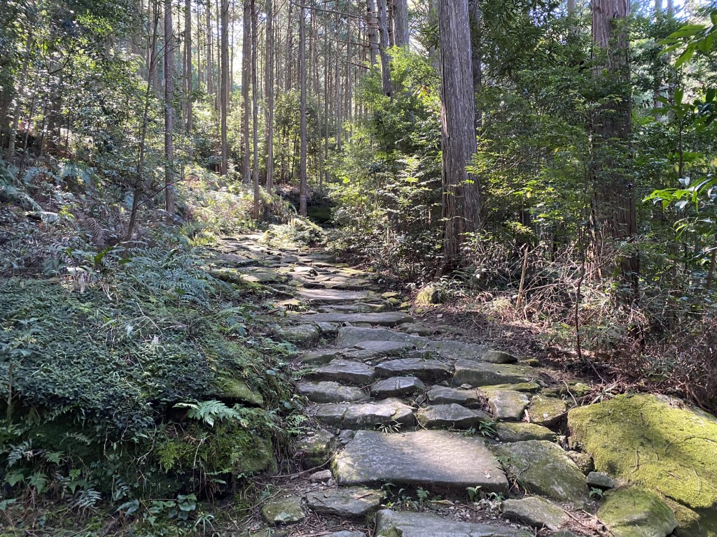 実はこの馬越峠、熊野古道の中でも特に楽しみにしてた場所。 その理由は…そう、美しい石畳! 歩き始めると、まるで物語の中に入り込んだみたいな景色が続いてて、もう感動の連続。昔の人たちが知恵と力を合わせて作った道なんだと思うと、足を運ぶだけで心が動く。